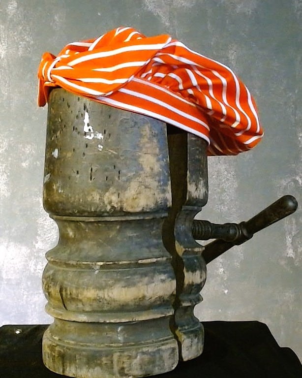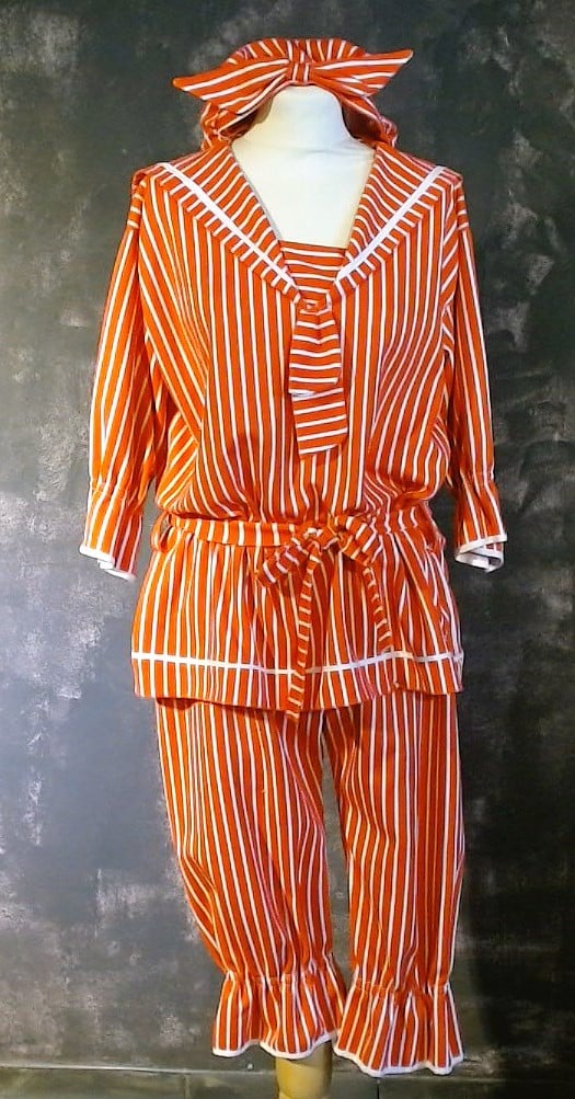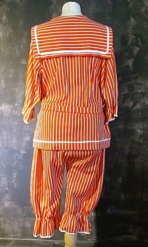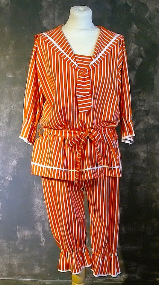 Ensemble compé d'une culotte, d'une blouse et d'un bonnet rayé rouge et blanc