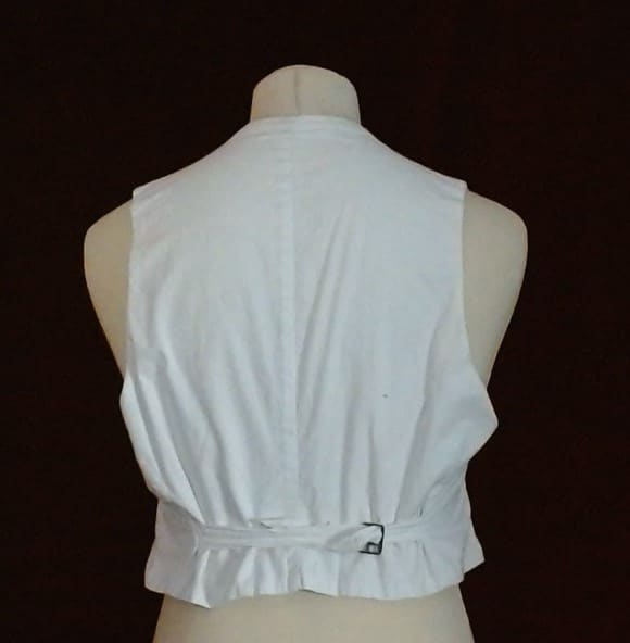 Gilet du soir en piqué de coton blanc, années 30, double boutonnage et grand revers de col