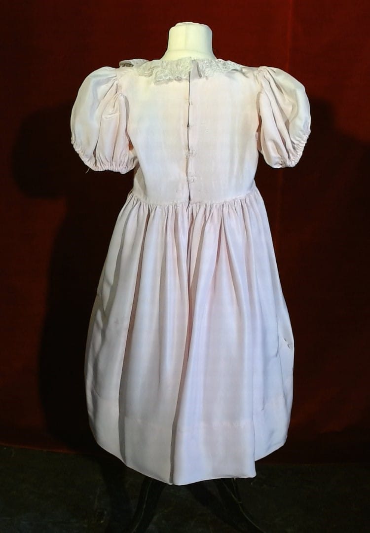 Robe de princesse rose avec de petites manches ballon et un décor de galons argentés