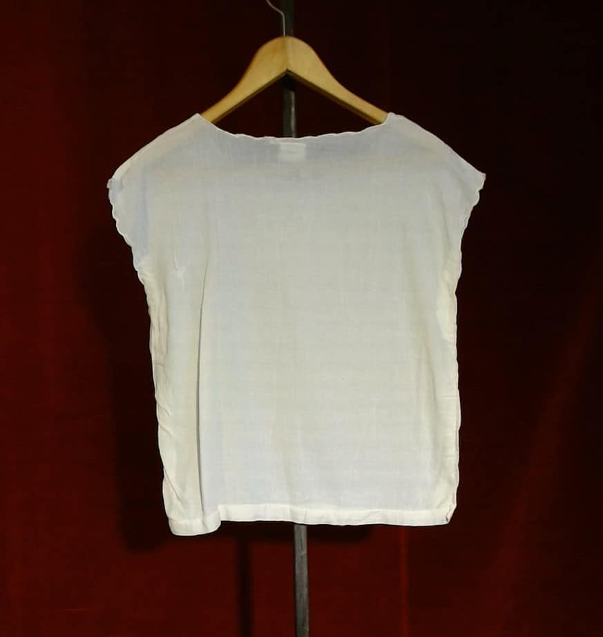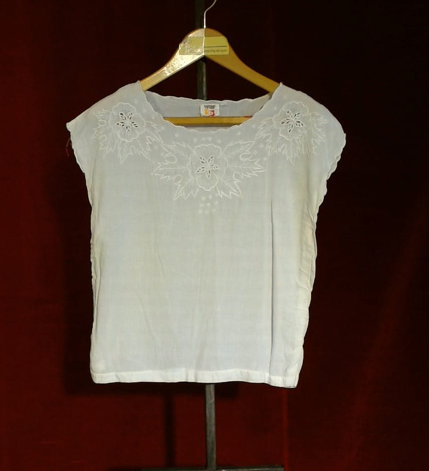 Top blanc en coton ornementé de broderie blanche de style mexicain années 80